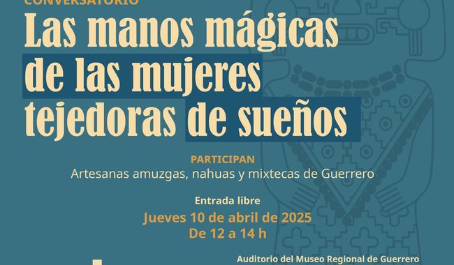 La Secretaría de Cultura, a través de la Unidad Regional de Guerrero de la Dirección General de Culturas Populares, Indígenas y Urbanas (DGCPIU), en colaboración con el Museo Regional de Guerrero/INAH, invita al conversatorio “Las manos mágicas de las mujeres tejedoras de sueños”, un espacio dedicado a la difusión y reconocimiento del arte textil en el Estado de Guerrero.