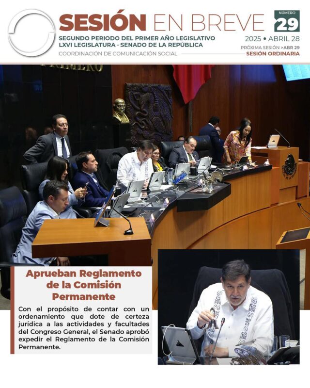El Pleno del Senado aprobó la creación del Reglamento de la Comisión Permanente del Congreso General de los Estados Unidos Mexicanos.
