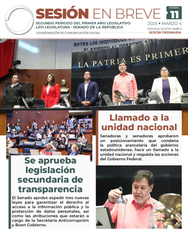 El Senado emitió el pronunciamiento «Unidad Nacional frente al injerencismo», como respuesta a la imposición de aranceles por parte del Gobierno de Estados Unidos de América a México.