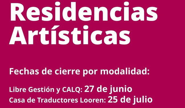 - La convocatoria residencias Artísticas se realiza en colaboración con el Consejo de Artes y Letras de Quebec (CALQ) y la Casa de Traductores Looren.