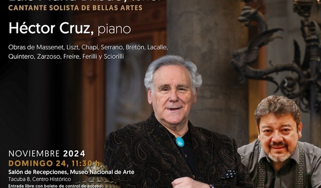 Con el programa Miscelánea lírica, el tenor Luis María Bilbao y el pianista Héctor Cruz se presentarán el 24 de noviembre a las 11:30 h en el Salón de Recepciones del Museo Nacional de Arte (MUNAL), en el marco del ciclo Música INBAL en el MUNAL.