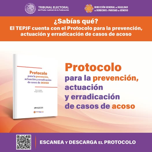 Tribunal Electoral del Poder Judicial de la FederaciónInfografías El #TribunalElectoral cuenta con el «Protocolo para la prevención, actuación y erradicación de casos de acoso»; una guía clara sobre lo que se debe hacer para impedir y atender las problemáticas del acoso y hostigamiento. Por Araceli Bastida - noviembre 19, 2024 0 FacebookTwitterPinterestLinkedinReddItEmailWhatsAppTelegramVK