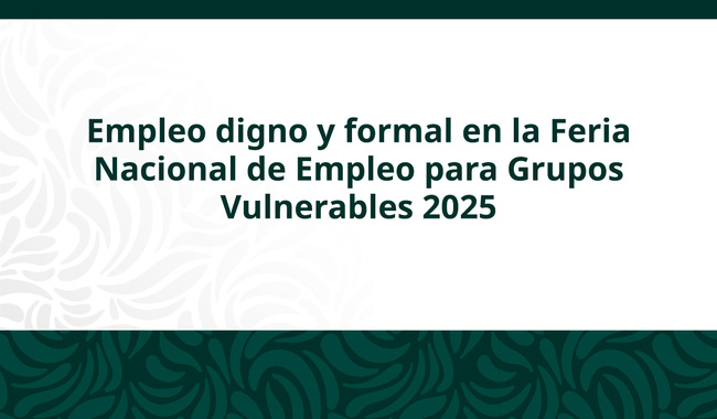 La Secretaría del Trabajo y Previsión Social (STPS) reitera su compromiso con la inclusión y el empleo digno. A través de la Unidad del Servicio Nacional de Empleo (SNE) y en coordinación con las 167 oficinas en el país, operadas en conjunto con los 32 gobiernos de las entidades federativas, anuncia la realización de la Feria Nacional de Empleo para Grupos Vulnerables 2025. Se llevará a cabo durante el mes de octubre, teniendo como propósito principal, brindar oportunidades laborales formales e incluyentes, con énfasis en personas con alguna situación de vulnerabilidad, como pueden ser las personas con alguna discapacidad, adultas mayores, mujeres que se reincorporan al mercado laboral y personas preliberadas en cualquiera de sus modalidades, entre otros grupos.