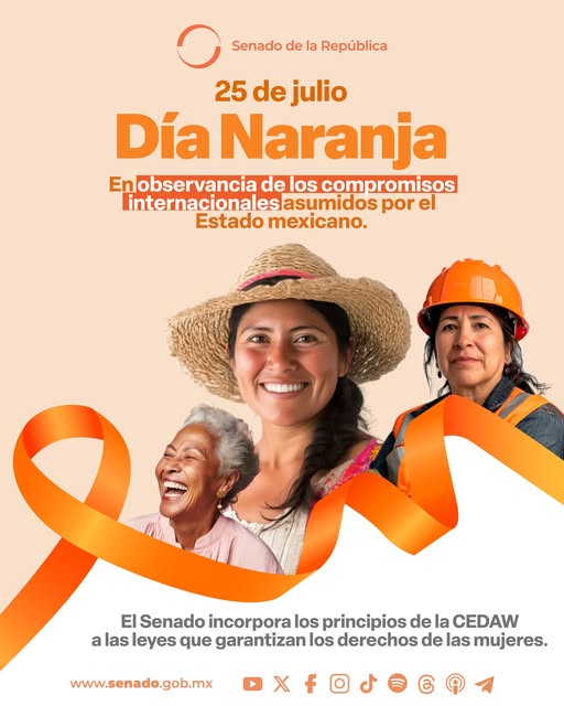 Senado de la RepublicaInfografías En este Día Naranja, alzamos la voz para reafirmar nuestro compromiso con la erradicación de todo tipo de violencia contra mujeres y niñas. Desde el Senado, se legisla para garantizar sus derechos, como al incorporar los principios de la CEDAW. Por Araceli Bastida - julio 25, 2025 0 FacebookTwitterPinterestLinkedinReddItEmailWhatsAppTelegramVK
