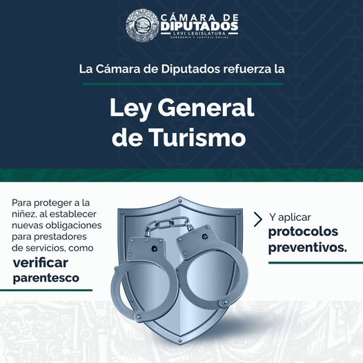 Camara de DiputadosInfografías En la #LXVILegislatura reformamos la Ley General de Turismo para establecer protocolos preventivos y proteger a la niñez, al establecer la obligación de los prestadores de servicios de verificar el parentesco de infantes con sus acompañantes. Por Araceli Bastida - junio 23, 2025 0 FacebookTwitterPinterestLinkedinReddItEmailWhatsAppTelegramVK