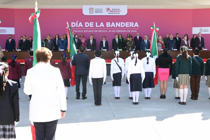 En la entidad mexiquense el orador principal, Óscar Flores Jiménez, Secretario de Finanzas señaló que rendir homenaje a la bandera es también respetar la ley y actuar con ética y honestidad, valores que guían al Gobierno de la Maestra Delfina Gómez Álvarez para lograr la transformación del Estado de México en una entidad más justa, alejado de la pobreza y garantizar el bienestar de la población.