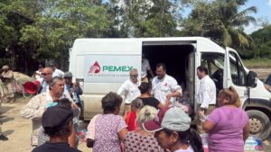 Las donaciones se realizaron de manera voluntaria por personal de los distintos centros de trabajo de la institución • A través de tres Unidades Médicas Móviles, la Empresa Pública del Estado ofrece consultas y medicamentos básicos gratuitos en la zona • Personal realiza labores de limpieza en casas y calles de las comunidades afectadas