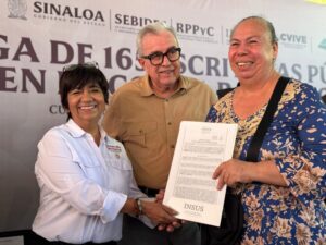 “Como regalo de navidad de parte del gobierno federal, por parte de la presidenta de la República, de parte de la doctora Edna Vega y desde el Instituto Nacional del Suelo Sustentable damos certeza jurídica a 760 familias; hoy se convierten en dueñas de un pedacito de Sinaloa”, dijo el funcionario.