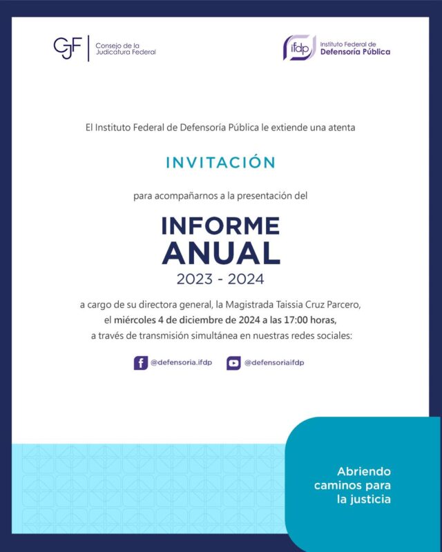 ¡Es hoy! Sigue la trasmisión en vivo del #InformeAnual2024 Conoce el trabajo de la Defensoría Pública a favor de las personas en situación de vulnerabilidad.