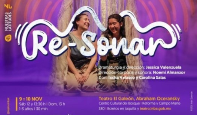 La Secretaría de Cultura del Gobierno de México y el Instituto Nacional de Bellas Artes y Literatura (INBAL), a través de la Coordinación Nacional de Teatro y de Colectiva Semillas, presentan Re-sonar, escrita y dirigida por Jessica Valenzuela y con interpretaciones de Ixcha Velasco y Carolina Salas.