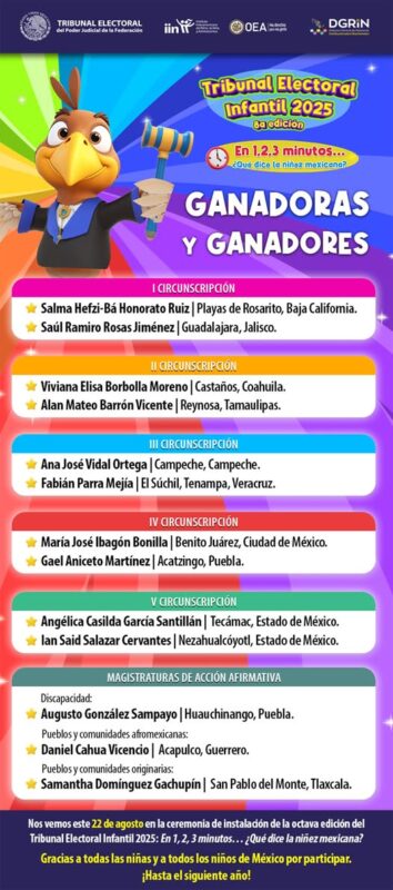 ¡Felicidades a las ganadoras y ganadores del Tribunal Electoral Infantil 2025! Gracias a cada participante por su entusiasmo, esfuerzo y valiosas ideas. El futuro de nuestra democracia está en sus manos.