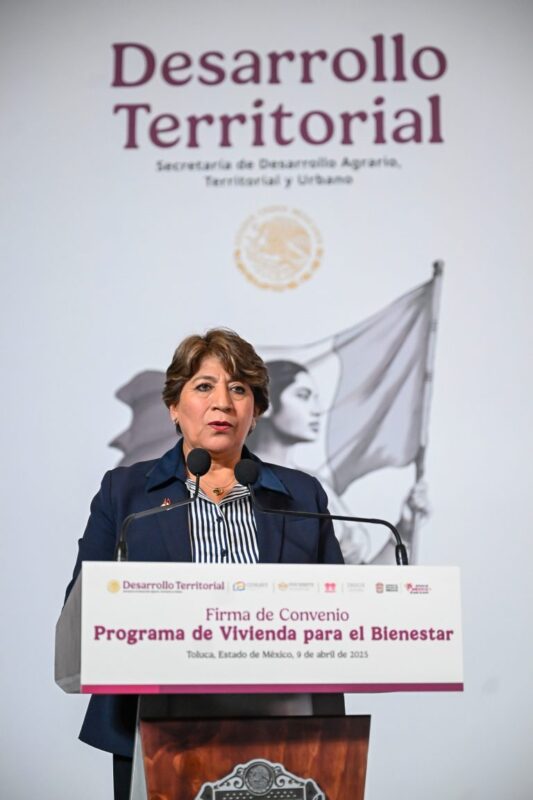 TOLUCA, Estado de México. – La Gobernadora del Estado de México, Delfina Gómez Álvarez y Edna Elena Vega Rangel, Titular de la Secretaría de Desarrollo Agrario, Territorial y Urbano (Sedatu), firmaron un convenio de colaboración para implementar el Programa de Vivienda para el Bienestar, a través del cual se construirán 71 mil viviendas en la entidad.