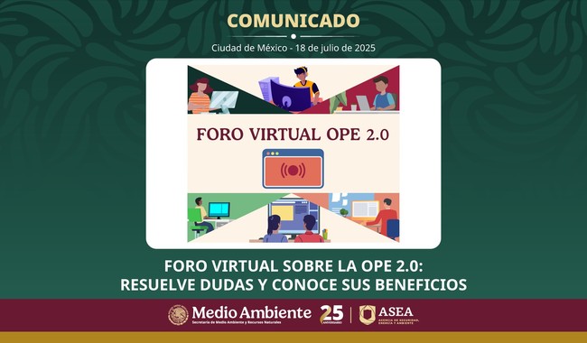 Tras la puesta en marcha de la Oficialía de Partes Electrónica 2.0 (OPE 2.0), el pasado 7 de julio, la Agencia de Seguridad, Energía y Ambiente (ASEA) llevará a cabo un foro virtual para aclarar dudas sobre el proceso de alta, así como sobre los trámites disponibles en esta nueva plataforma digital.