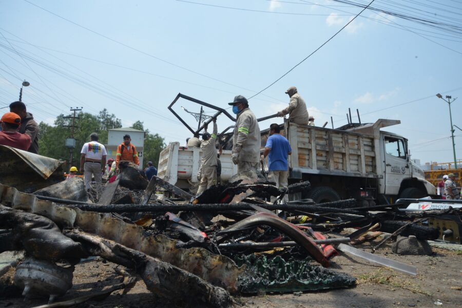 Se removieron láminas de asbesto y de lámina, cartón, polines, tinacos, refrigeradores, colchones, sillones, llantas, roperos, bolsas de ropa, así como productos quemados de tienda de abarrotes.
