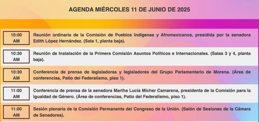 #HoyEnElSenado se desarrollará la siguiente agenda de actividades.