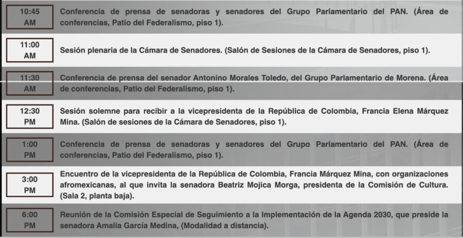 Inicio Senado de la Republica Infografías #HoyEnElSenado se desarrollará la siguiente agenda de actividades.