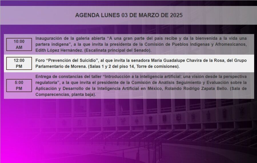 #HoyEnElSenado se desarrollará la siguiente agenda de actividades.