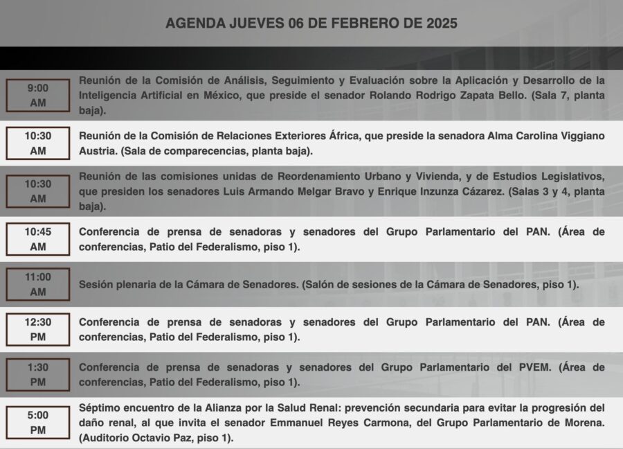 #HoyEnElSenado se desarrollará la siguiente agenda de actividades.