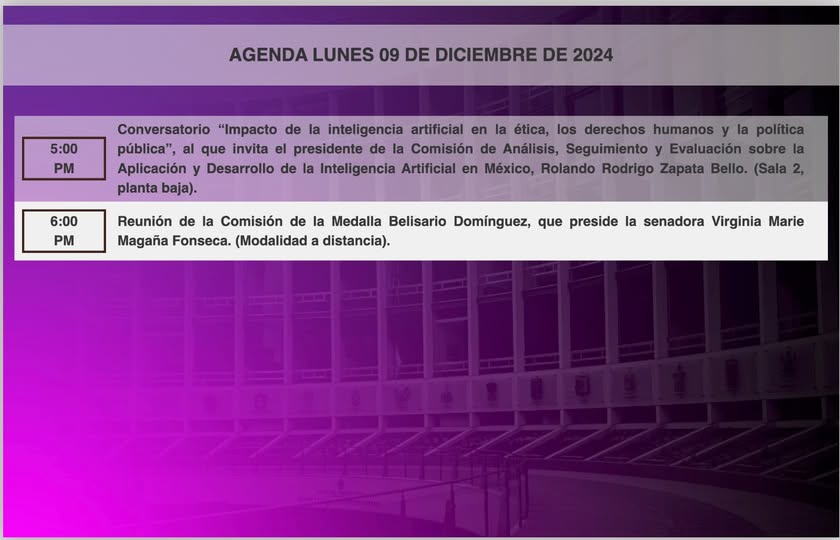 #HoyEnElSenado se desarrollará la siguiente agenda de actividades.