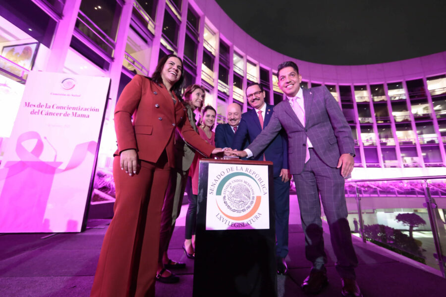 Cabe recordar que octubre es el mes de concientización sobre esta enfermedad que representa la primera causa de muerte por cáncer en mujeres. En este contexto, senadoras y senadores de la república encabezaron la ceremonia para iluminar las instalaciones del Senado, de color de rosa, con motivo de esta conmemoración.