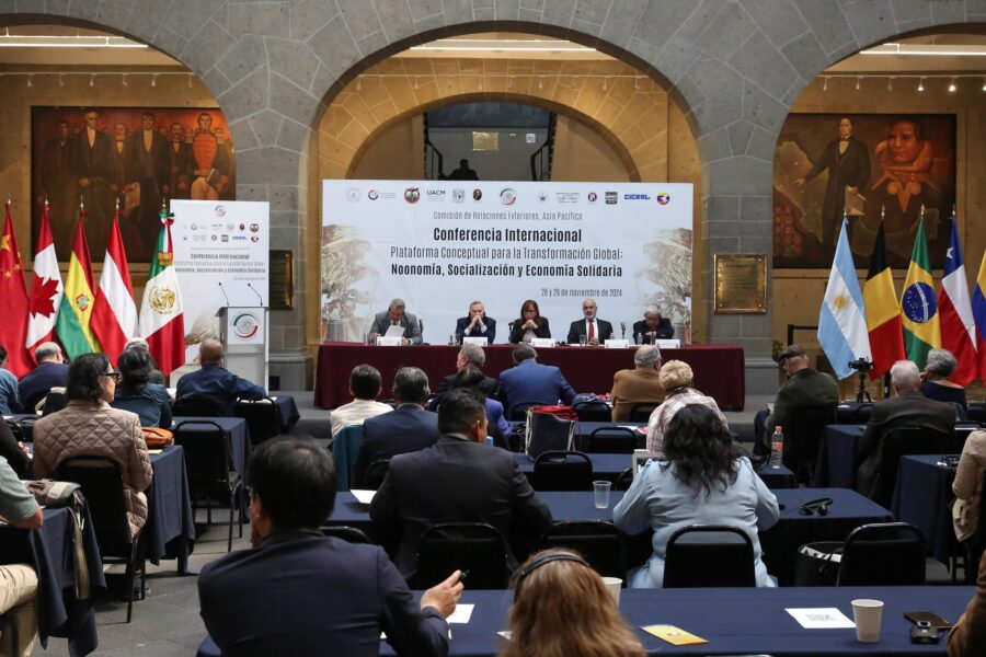 La presidenta de la Comisión de Relaciones Exteriores Asia-Pacífico, Yeidckol Polevnsky Gurwitz, inauguró la conferencia internacional “Plataforma conceptual para la transformación global: noonomía, socialización y economía solidaria”, que tiene el objetivo de dialogar sobre la posibilidad de integrar teorías y prácticas para llegar a un concepto de transformación global diferente del fundamentalismo de mercado, conocido como neoliberalismo.
