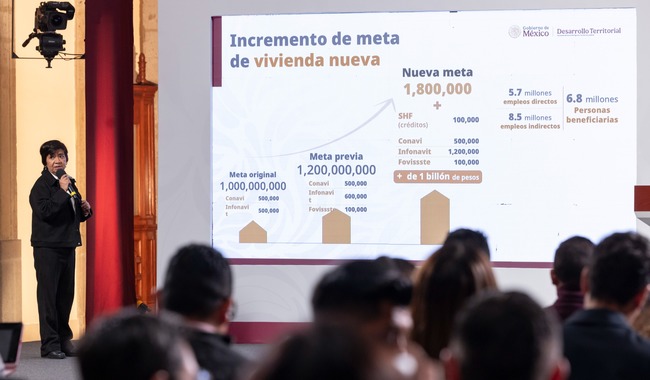 Durante la Mañanera del Pueblo que encabeza la presidenta, Claudia Sheinbaum, la secretaria Vega Rangel detalló que el Infonavit es quién incrementó su meta a un millón 200 mil viviendas nuevas, la Conavi se mantendrá en 500 mil y Fovissste construirá 100 mil. Dijo que tan sólo en este año, se iniciará la construcción de 395 mil viviendas en todo el país; y precisó que ya están en proceso de construcción 163 mil 289 mil viviendas en la mayoría de los estados del país.