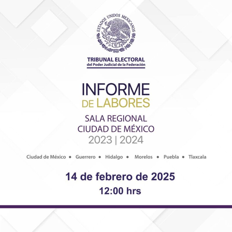#InformeSRCDMX | El 14 de febrero, te invitamos a seguir la sesión solemne en que la magistrada presidenta María G. Silva Rojas presentará el informe de labores 2023-2024 de la #SRCDMX.
