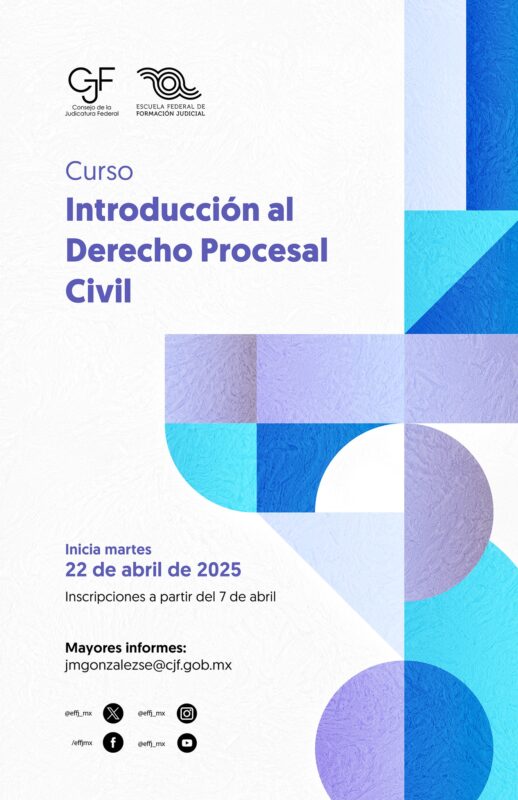 Invitamos a personas oficiales judiciales del Poder Judicial de la Federación y al público en general al curso: Introducción al Derecho Procesal Civil