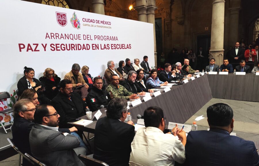 La jefa de Gobierno de la Ciudad de México, Clara Brugada Molina, anunció una estrategia de seis puntos que permitirán declarar a las escuelas como espacios libres de violencia, y, para ello, instaló el Gabinete para el Programa Paz y Seguridad en las Escuelas Secundarias, Preparatorias y Universidades públicas y privadas de la capital.