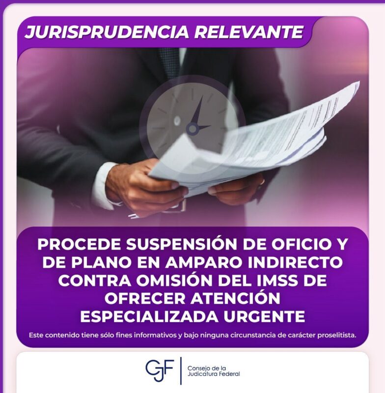 Consejo de la Judicatura FederalInfografías #JurisprudenciaRelevante | Procede la suspensión contra la omisión del #IMSS de brindar atención médica especializada urgente, cuando hay riesgo de poner en peligro la vida, dignidad o integridad de una persona. Por Araceli Bastida - abril 10, 2025 0 FacebookTwitterPinterestLinkedinReddItEmailWhatsAppTelegramVK