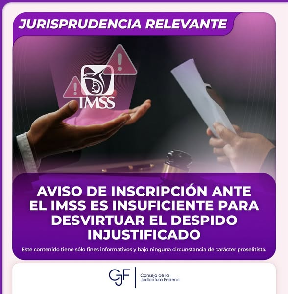 Inicio Consejo de la Judicatura Federal Infografías #JurisprudenciaRelevante | Se determinó que el aviso de inscripción ante el IMSS...