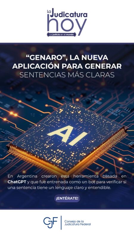 Consejo de la Judicatura FederalInfografías #JusticiaEnElMundo | En Argentina desarrollaron a “Genaro”, una #InteligenciaArtificial que genera sentencias con lenguaje claro. Por Araceli Bastida - octubre 22, 2024 0 FacebookTwitterPinterestLinkedinReddItEmailWhatsAppTelegramVK