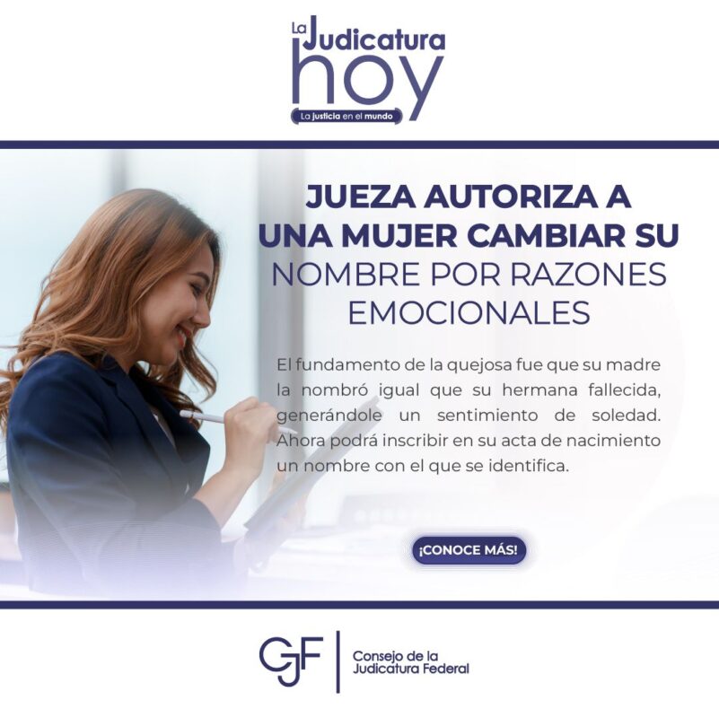 Consejo de la Judicatura FederalInfografías #JusticiaEnElMundo | Una jueza en Argentina autorizó el cambio de nombre de una mujer por una decisión que tomó su madre cuando nació. Por Araceli Bastida - noviembre 12, 2024 0 FacebookTwitterPinterestLinkedinReddItEmailWhatsAppTelegramVK