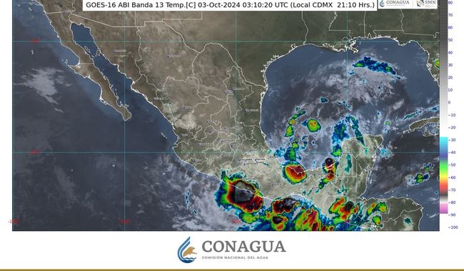 Su circulación, en interacción con la vaguada monzónica y una circulación de baja presión en el suroeste del golfo de México, ocasionarán lluvias extraordinarias (mayores a 250 milímetros [mm]) en Chiapas, Oaxaca, Tabasco y Veracruz; intensas (de 75 a 150 mm) en Campeche y Guerrero; muy fuertes (de 50 a 75 mm) en Puebla, y fuertes (de 25 a 50 mm) en el Estado de México, Michoacán y Morelos.