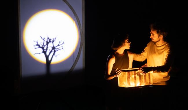 • A través de baile, diálogos, teatro de sombras y videomaping, la pieza confronta al público en su relación con la noche y cuestiona la sobrestimulación que lleva a tener una vida más acelerada y sin descanso