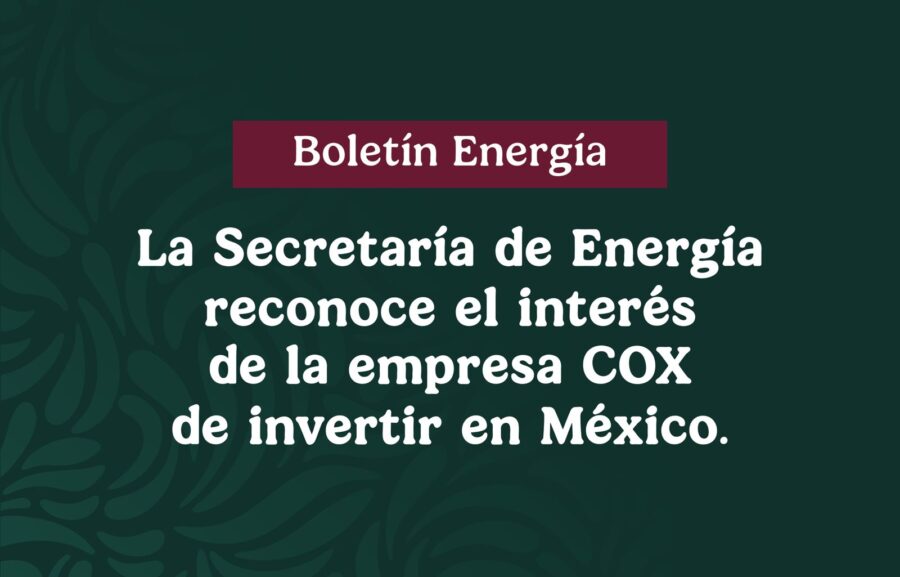 La Secretaría de Energía reconoce y se congratula por el interés de la española COX de participar en el sector energético mexicano, y el anuncio de inversiones estratégicas por más de 10,700 millones de dólares en nuestro país para el periodo 2025-2030.