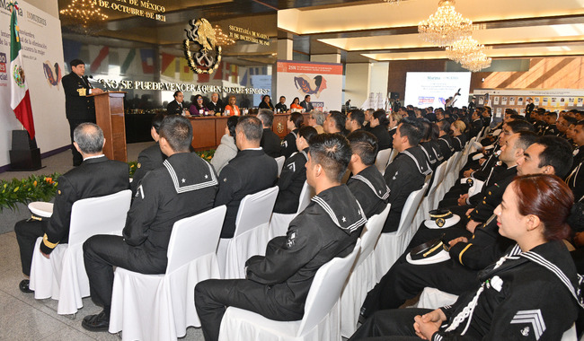 Durante su intervención, el Almirante Barradas Cobos, Subsecretario de Marina, aseguró que “desde el año 2016, se ha mantenido el “Certificado Nivel Oro” de la Norma en Igualdad Laboral y No Discriminación, acreditando inicialmente con 10 áreas e incrementando progresivamente a 39 áreas caracterizadas en nuestra la Institución; lo cual ha permitido la promoción, difusión y fomento a la igualdad laboral y no discriminación, al mismo tiempo que favorecen el desarrollo integral del personal en nuestra Institución”.