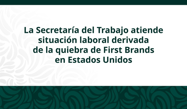 La Secretaría del Trabajo y Previsión Social (STPS) informa que, ante la quiebra del corporativo First Brands en Estados Unidos y las afectaciones que esta situación ha generado en empresas maquiladoras establecidas en territorio nacional, el Gobierno de México ha activado un mecanismo de atención y acompañamiento institucional para salvaguardar los derechos laborales de las y los trabajadores involucrados.