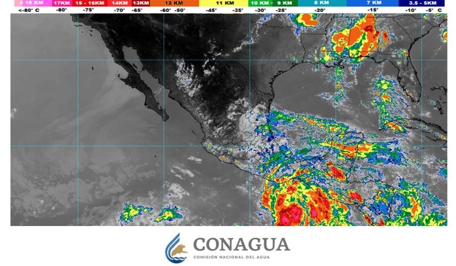 Durante las próximas horas, la circulación y los desprendimientos nubosos de la tormenta tropical Erick ocasionarán lluvias puntuales intensas (de 75 a 150 milímetros [mm]) en Guerrero, Oaxaca, Chiapas y el sur de Veracruz, así como viento de 30 a 50 kilómetros por hora (km/h) con rachas de 60 a 80 km/h en costas de Oaxaca y Chiapas, y de 10 a 20 km/h con rachas de 30 a 50 km/h en el litoral de Guerrero. Asimismo, se prevé oleaje de 2.5 a 3.5 metros (m) de altura en costas de Oaxaca y Chiapas, y de 1.5 a 2.5 m de altura en el litoral de Guerrero.