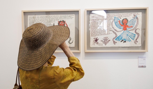Se trata de una muestra conformada por 19 dibujos en papel amate, un material propio de la comunidad de San Pablito, Pahuatlán, Puebla, de donde es originario García Téllez, un chamán y artista otomí que por más de seis décadas ha desempeñado su labor ceremonial y artística.
