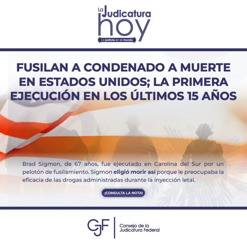 Consejo de la Judicatura FederalInfografías #LaJudicaturaHoy | En #JusticiaEnElMundo: Primera ejecución por fusilamiento de los últimos 15 años, en #EstadosUnidos. Por Araceli Bastida - marzo 17, 2025 0 FacebookTwitterPinterestLinkedinReddItEmailWhatsAppTelegramVK