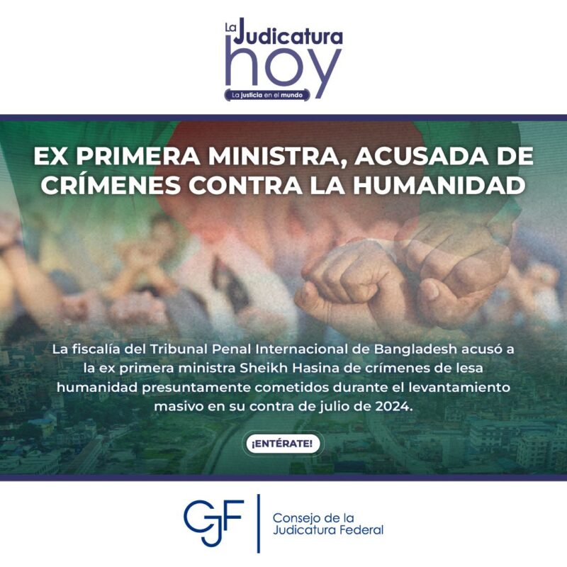 #LaJudicaturaHoy | La ex primera ministra Sheikh Hasina enfrenta cinco acusaciones por crímenes de lesa humanidad y huyó a la India en agosto de 2024.