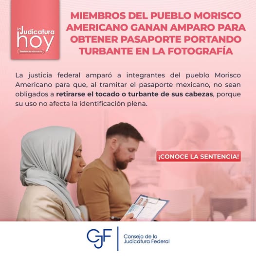 Consejo de la Judicatura FederalInfografías #LaJudicaturaHoy | La justicia federal amparó al pueblo Morisco Americano y determinó que el uso de turbante no impide la plena identificación en fotos oficiales. Por Araceli Bastida - julio 4, 2025 0 FacebookTwitterPinterestLinkedinReddItEmailWhatsAppTelegramVK