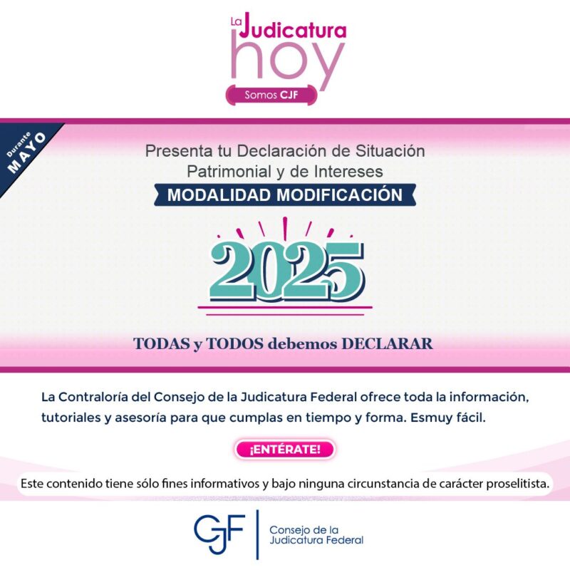 Consejo de la Judicatura FederalInfografías LaJudicaturaHoy | ¿Tienes dudas sobre cómo presentar tu Declaración de Situación Patrimonial y de Intereses 2025? Por Araceli Bastida - mayo 6, 2025 0 FacebookTwitterPinterestLinkedinReddItEmailWhatsAppTelegramVK