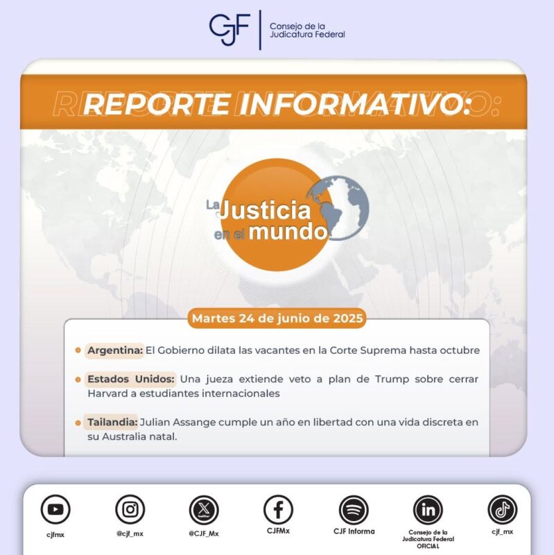 #LaJusticiaEnElMundo | Argentina, Estados Unidos, España, Tailandia y otros países: Conoce los hechos más relevantes en materia de justicia internacional.