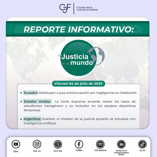 Consejo de la Judicatura FederalInfografías #LaJusticiaEnElMundo | Entérate de las noticias más relevantes sobre justicia internacional. Por Araceli Bastida - julio 4, 2025 0 FacebookTwitterPinterestLinkedinReddItEmailWhatsAppTelegramVK