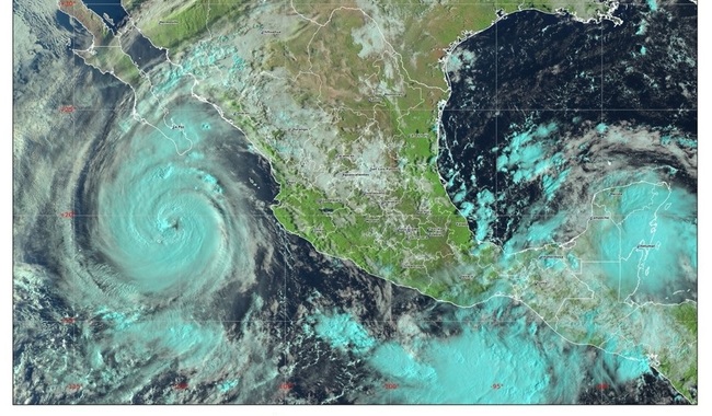A las 09:00 horas, tiempo del centro de México, el centro del huracán se localizó aproximadamente a 345 kilómetros (km) al sur de Cabo San Lucas, Baja California Sur, y a 465 km al oeste de Cabo Corrientes, Jalisco, con vientos máximos sostenidos de 175 km/h, rachas de 215 km/h y desplazamiento hacia el noroeste a 17 km/h. No se descarta que se intensifique a huracán categoría 3, durante las próximas 24 horas.