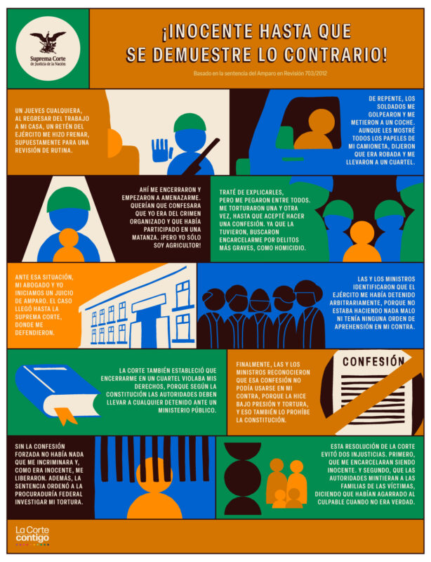 Suprema Corte de Justicia de la NaciónInfografías ¡Las personas somos inocentes hasta que se pruebe lo contrario! Invalidar pruebas fabricadas y declaraciones obtenidas con tortura es hacer justicia. Por Araceli Bastida - diciembre 12, 2024 0 FacebookTwitterPinterestLinkedinReddItEmailWhatsAppTelegramVK