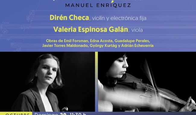 Con la interpretación de las piezas Último aliento (de Edna Acosta, a cargo de la violinista Dirén Checa), así como el estreno en México de Reflejos de la Luna roja (de Adrián Echeverría, en la interpretación de la violista Valeria Espinoza Galán), se presentará un concierto el domingo 20 de octubre a las 11:30 h en el Salón de Recepciones del Museo Nacional de Arte (MUNAL) como parte de la programación del 46 Foro Internacional de Música Nueva “Manuel Enríquez” (FIMNME).