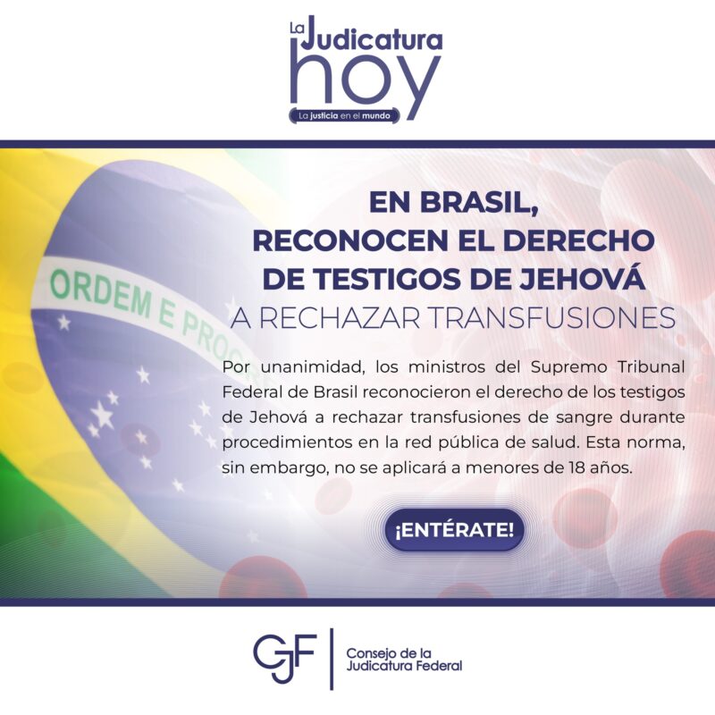 Consejo de la Judicatura FederalInfografías #LoMásLeído | En Brasil, el Supremo Tribunal Federal reconoció el derecho de los Testigos de Jehová a rechazar transfusiones de sangre. Por Araceli Bastida - enero 6, 2025 0 FacebookTwitterPinterestLinkedinReddItEmailWhatsAppTelegramVK